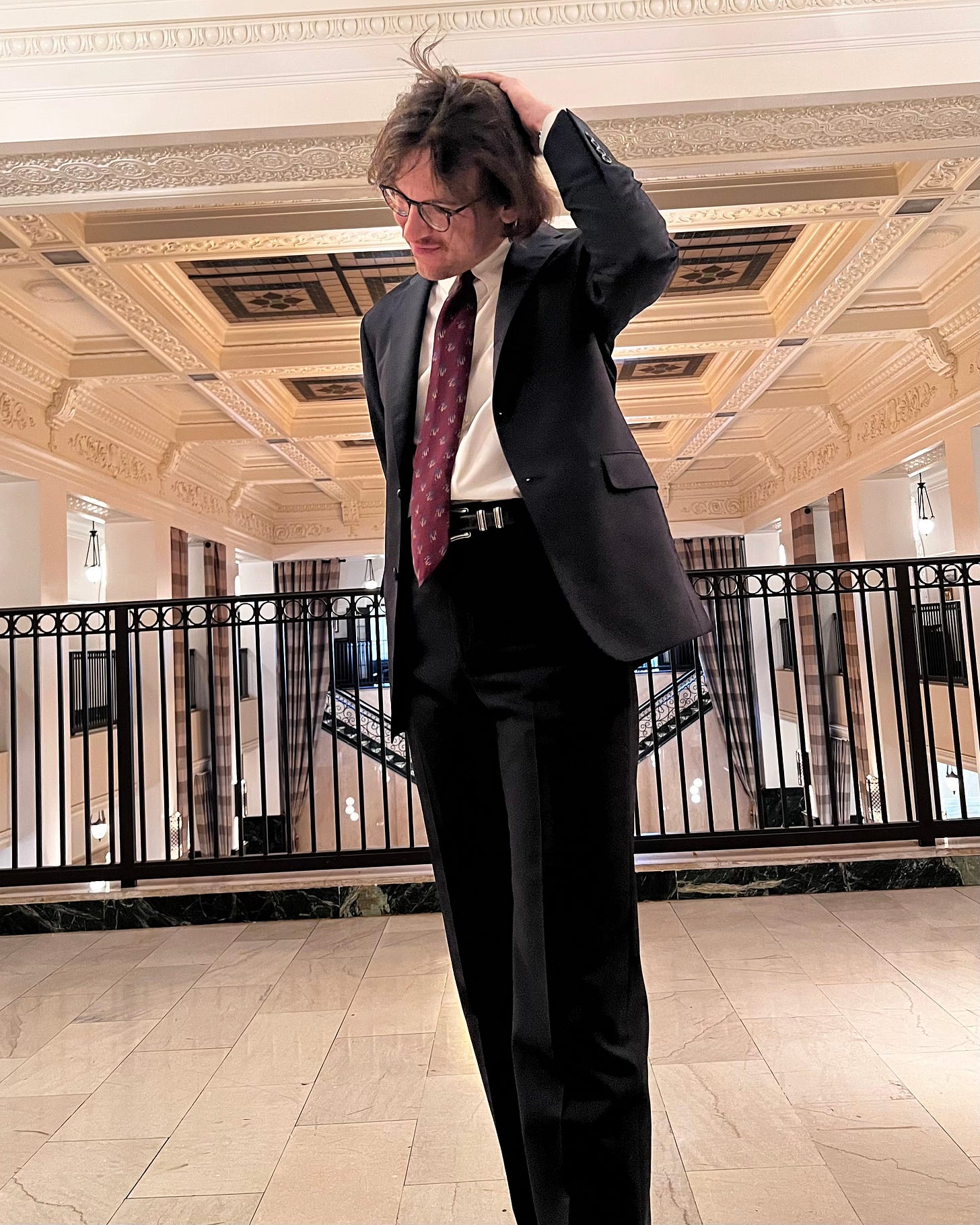 I’m doing it reasonably well here, I think. I’m a bit wider than I was when I had this suit tailored last year, but the generous cut gives me a little (though not too much) margin for error.
